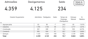 Município encerrou 2025 com saldo positivo de 234 vagas formais, puxado pelos setores de serviços, comércio e indústria.