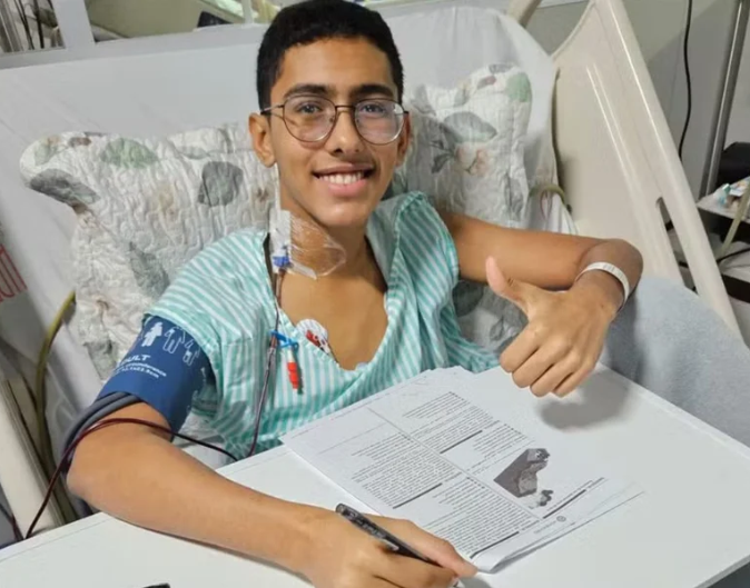 Mesmo durante o tratamento, Ítalo decidiu prestar o Enem 2025. Como não poderia comparecer ao local oficial da prova por causa da imunidade baixa, a família recorreu à Justiça.
