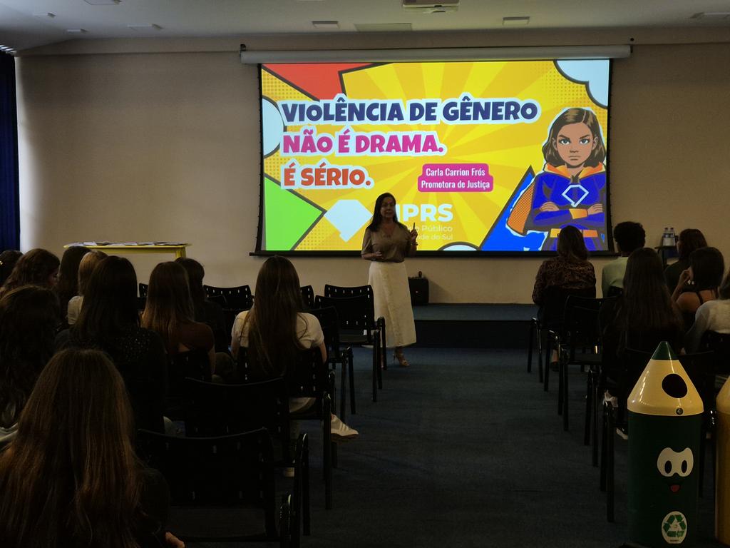 O Ministério Público do Rio Grande do Sul (MPRS) lançou, nesta segunda-feira (9), a cartilha educativa “Não é Drama, é Violência”, voltada à orientação de adolescentes sobre violência de gênero. O material foi apresentado durante uma palestra realizada no Colégio João Paulo I – Unidade Sul, em Porto Alegre, reunindo alunas entre 14 e 18 anos.