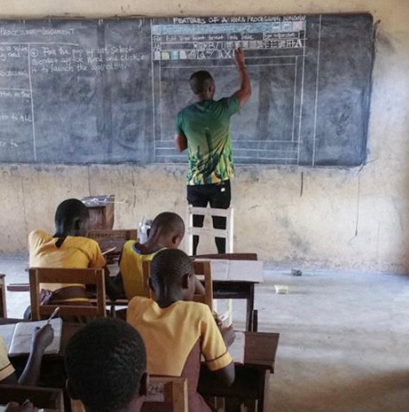 Sem computador, professor de Gana viraliza ao ensinar informática na lousa e recebe apoio da Microsoft