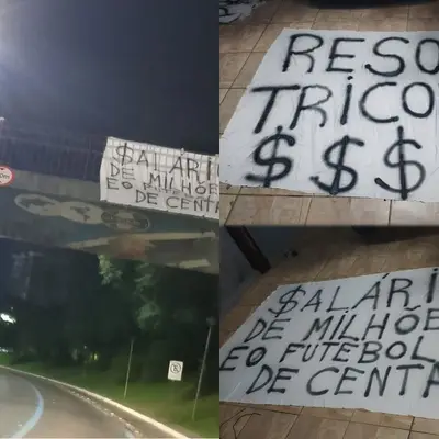 A estreia do Grêmio na Copa do Brasil, nesta terça-feira (21), às 19h30 contra o Confiança, ganhou um componente extracampo. Horas antes da partida, torcedores espalharam faixas em pontos de Porto Alegre com críticas diretas ao elenco e à gestão do futebol.