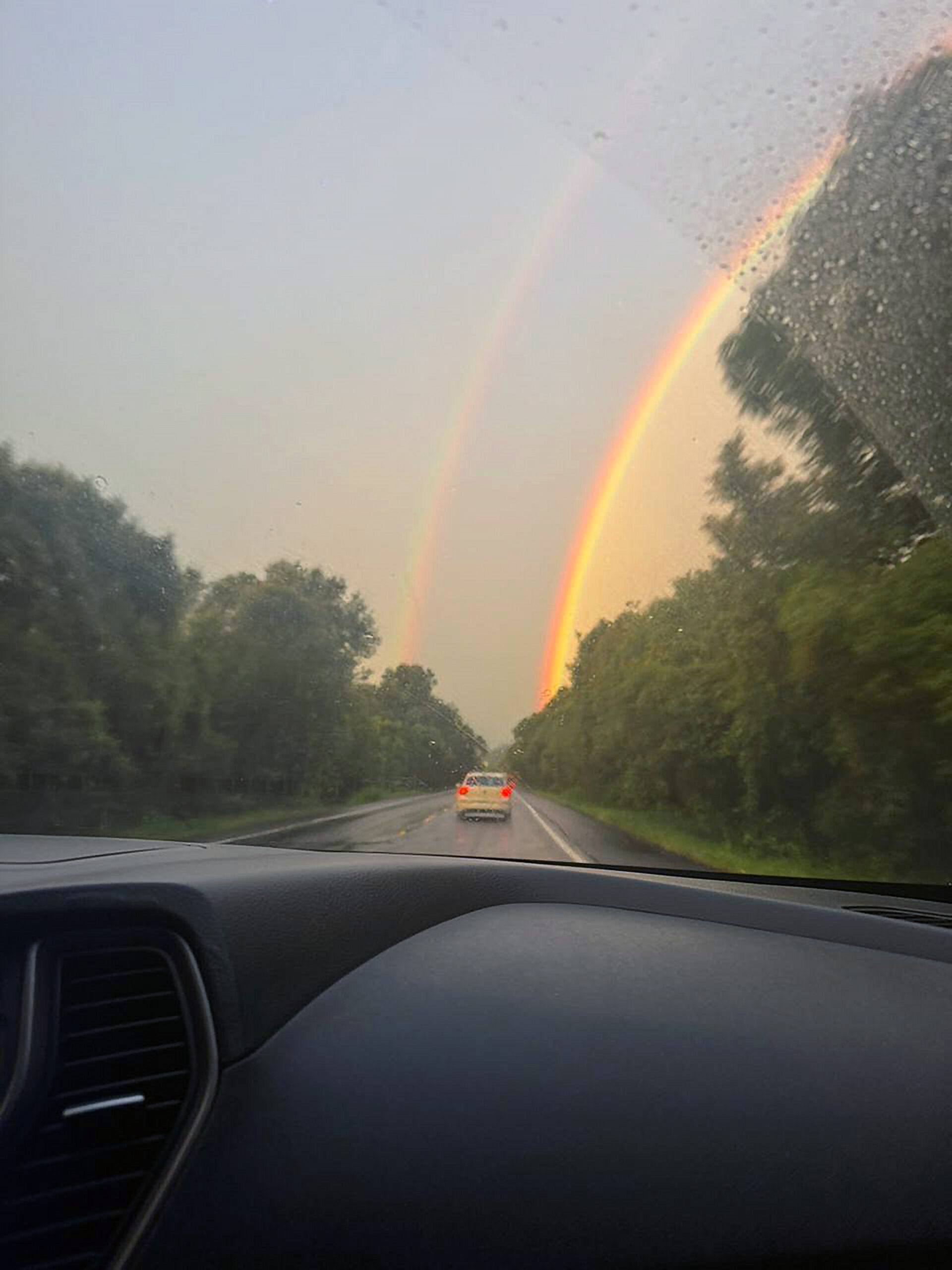 Um arco-íris duplo chamou atenção em Encantado no fim da tarde desta segunda-feira (7). O registro feito na região mostra dois arcos no céu, com cores vivas no principal e um segundo mais suave logo acima. A cena apareceu no momento em que a chuva dava trégua e o sol voltava a aparecer.