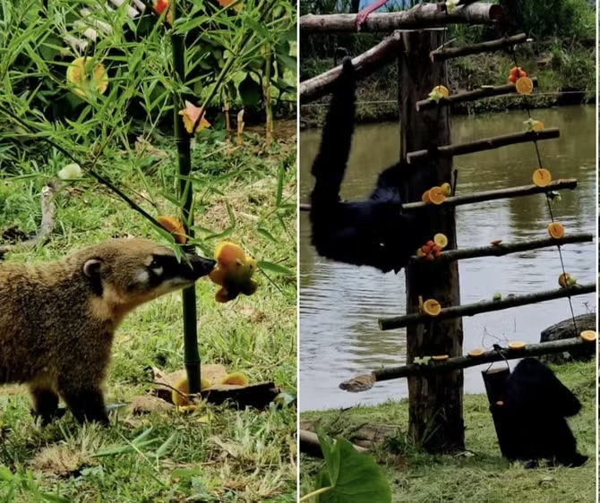 “Na natureza, o gasto calórico para buscar alimento é maior. Com a atividade, estimulamos que os animais trabalhem os diferentes sentidos”, explicou a bióloga.