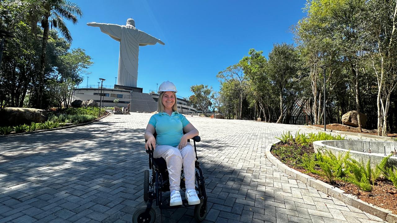 Danielle Lima, arquiteta e cadeirante, usa sua experiência pessoal e profissional para tornar o Complexo Cristo Protetor plenamente acessível a todos.