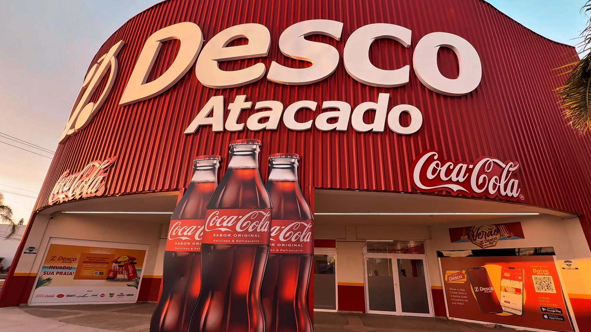 Quem passa pelo Desco Atacado, em Imbé, já começa a sentir o clima de verão antes mesmo de entrar na loja. Em parceria com a Coca-Cola FEMSA, a unidade ganhou uma fachada temática exclusiva, criada para remeter à sensação de abrir uma Coca-Cola bem gelada no litoral gaúcho.