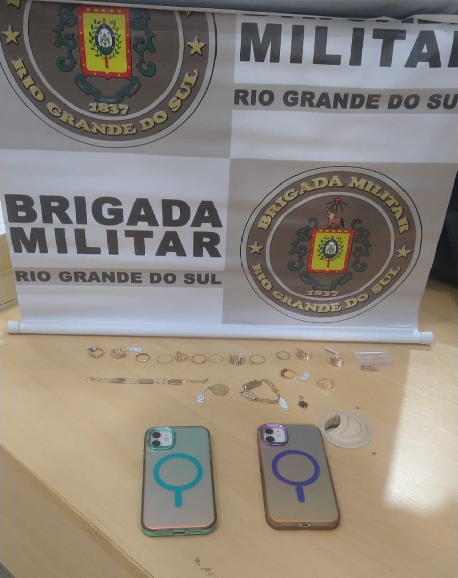 Na verificação, foram apreendidas diversas peças de ouro avaliadas em aproximadamente R$ 21,5 mil, além de valores em dinheiro. Parte das joias já foi reconhecida por vítimas dos furtos.