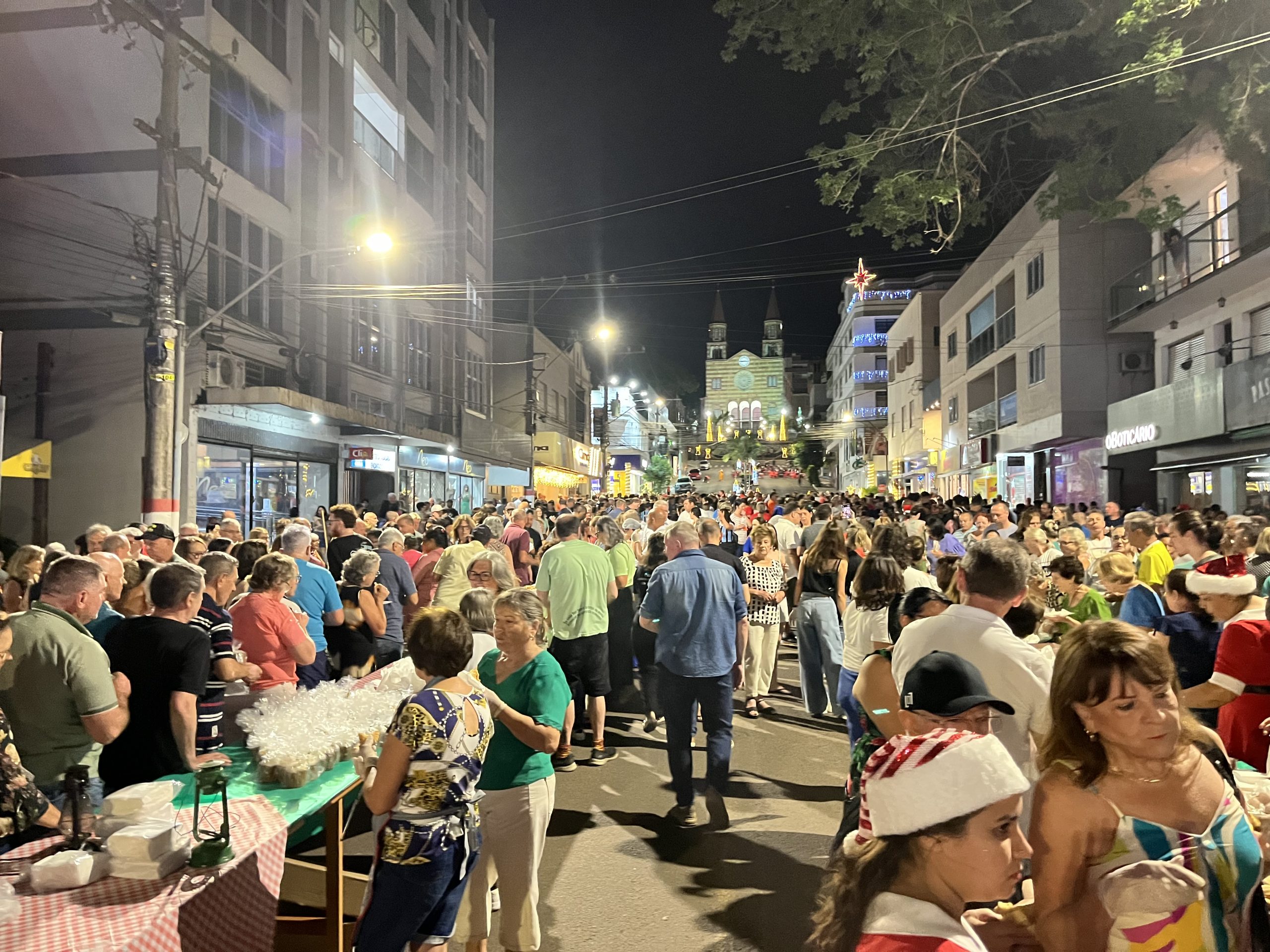 Na noite deste sábado, 21, Encantado realizou a 1ª Ceia Comunitária de Ação de Graças, uma das programações do Natal Mais Encantado 2024. Realizado ao ar livre, na Rua Padre Anchieta, entre a Duque de Caxias e a Júlio de Castilhos, o evento promoveu momentos de confraternização e celebração em uma atmosfera de união e gratidão.