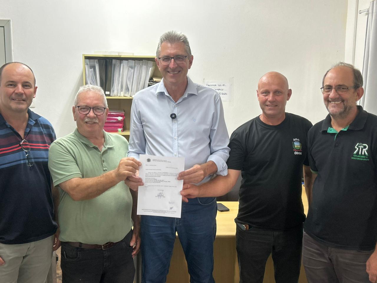 A entrega do recurso foi realizada ao vice-prefeito e secretário municipal de Agricultura e Obras, Baixinho Orsolim.