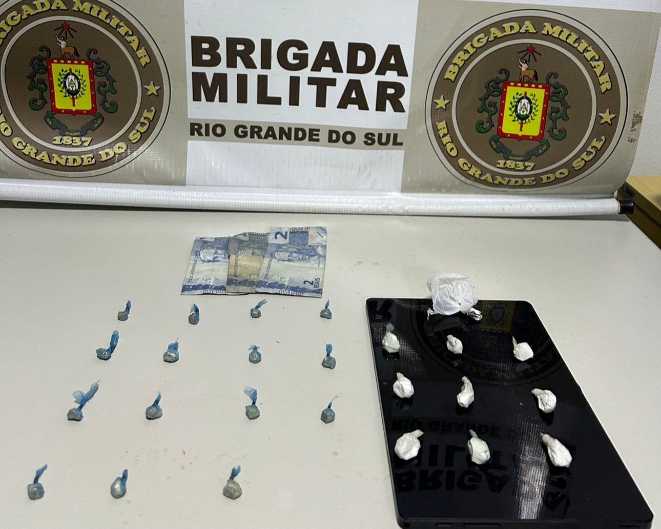 A prisão ocorreu durante patrulhamento de rotina da Força Tática do 40º Batalhão de Polícia Militar (BPM). Além das porções de crack e cocaína prontas para a venda, os policiais apreenderam uma quantia em dinheiro vivo e um tablet.