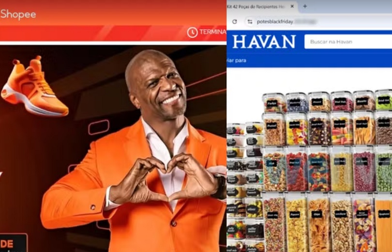 Golpistas estão aproveitando o período da Black Friday para aplicar golpes com sites falsos que imitam grandes varejistas, como Shopee e Havan. A fraude foi identificada por pesquisadores da empresa de segurança digital ESET, que alertam para o aumento de páginas falsas promovidas nas redes sociais com o objetivo de enganar consumidores e roubar dados pessoais.