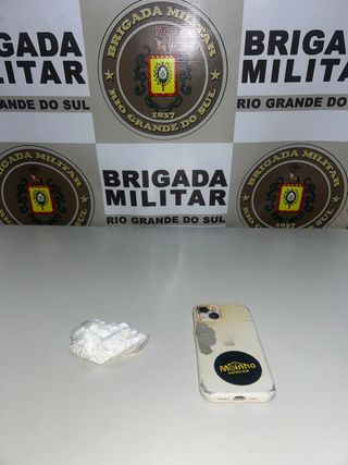 Durante a ação policial no bairro São Cristóvão, os policiais militares apreenderam uma porção de cocaína e um aparelho celular com a suspeita.