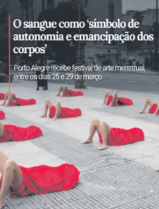 “Durante a próxima semana, espaços culturais de Porto Alegre sediarão o 1º Festival Latino-Americano de Artes e Menstruação (FLAM). Integrando performances, mostras artísticas, cine-debates, oficinas, palestras e ações educativas, o evento propõe colocar a menstruação no centro da criação artística e do debate público. O FLAM terá quatro dias de atividades, entre 25 e 29 de março, incluindo ações descentralizadas e apresentações em escolas. A proposta é reconhecer a arte menstrual como linguagem, campo de pesquisa e prática de transformação social, abordando temas relacionados ao corpo, ciclicidade, gênero, sexualidade, direitos das mulheres e dissidências de gênero, a partir de perspectivas decolonial, ecofeminista e antirracista. Uma das idealizadoras do FLAM, Paola Mallmann explica que enquanto algumas obras participantes têm o próprio fluido menstrual como matéria prima, outras artistas usam diversos materiais para fazer essa associação. “A menstruação é uma experiência que passa pelo corpo, mas que também constrói sentidos sociais. A própria interpretação em performance pode ser usada para expressar, de forma artística, essa experiência. E não é só sobre o sangramento menstrual, mas todo o ciclo. Teremos um monólogo sobre a menopausa, por exemplo”, detalha”.
