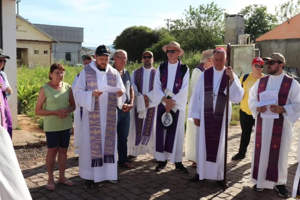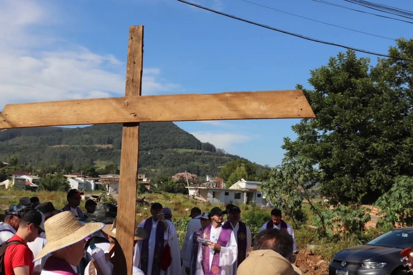 Na manhã de quinta-feira, 6, o clero da Diocese de Montenegro e os seminaristas do Seminário Maior São João Batista realizaram uma peregrinação em Roca Sales, como parte das atividades do Ano Jubilar da Igreja Católica, cujo lema é “Peregrinos de Esperança”. O evento teve como objetivo reforçar a fé e a solidariedade, especialmente após as severas enchentes que afetaram a cidade nos anos de 2023 e 2024.