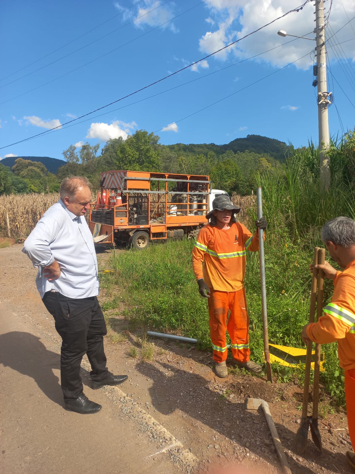 Outro local vistoriado foi a pavimentação da Linha Campinhos, obra voltada à melhoria das condições de tráfego na comunidade.
