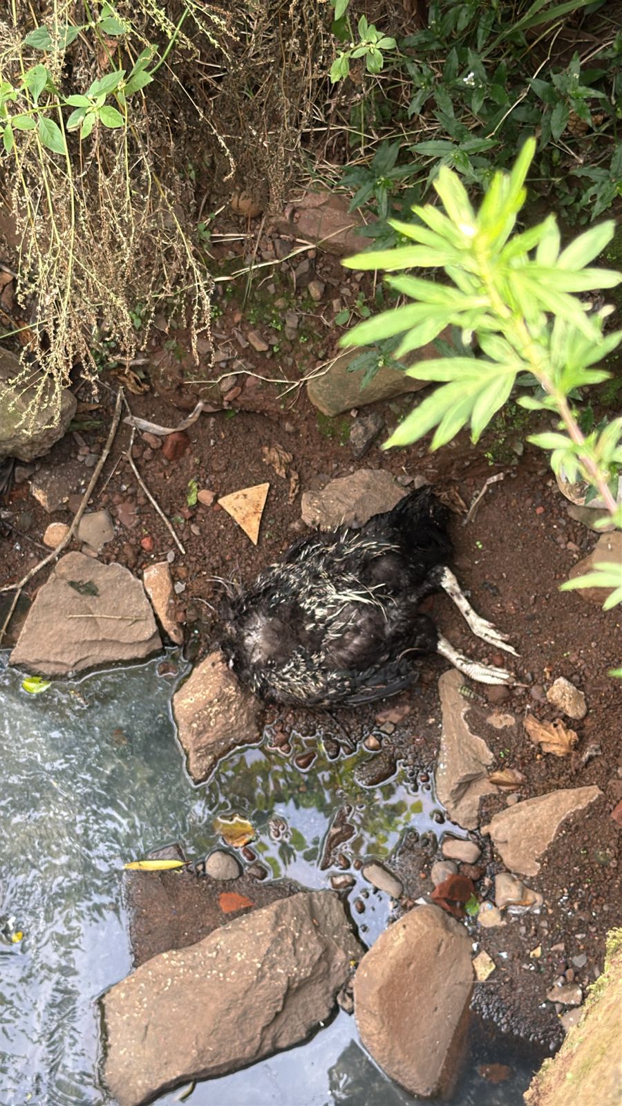 Durante o trabalho no local, agentes de endemias encontraram carcaças de galinhas com sinais de decapitação no leito do arroio. O material estava em uma área de curso d’água, o que agrava a ocorrência.