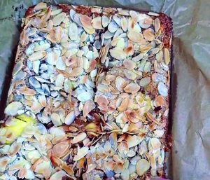 Bolo de nozes com creme de baunilha a amêndoas crocantes