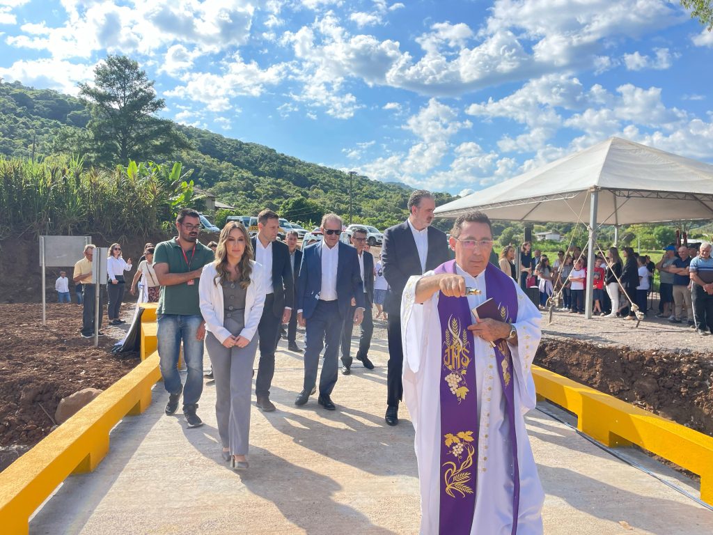 Santa Tereza avançou na reconstrução do município com a inauguração de uma nova ponte sobre o Arroio 22, realizada na manhã desta segunda-feira (17). A estrutura, que liga as ruas Olympio Valduga e Ferdinando Ferronatto, foi entregue em uma cerimônia com a presença de autoridades, moradores e parceiros do projeto.