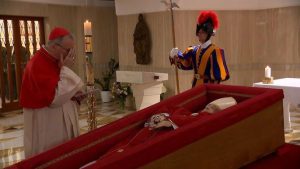 A partir desta quarta-feira (23), o corpo será trasladado da Casa Santa Marta para a Basílica de São Pedro, com passagem pelas praças Santa Marta e dos Protomártires Romanos, até o Altar da Confissão, onde acontecerá a Liturgia da Palavra. Em seguida, terá início a visitação pública dos fiéis.