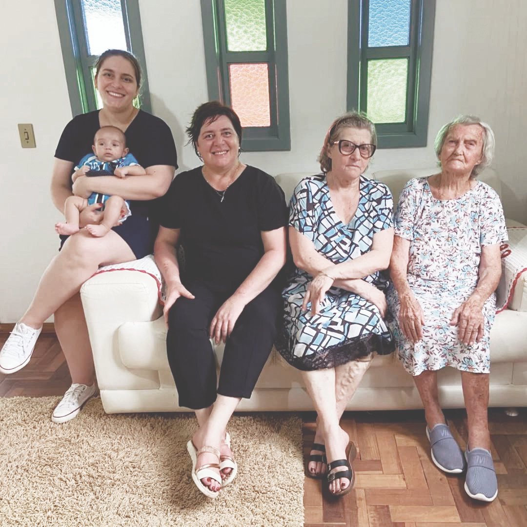 A história da família Salvi é marcada pela continuidade e pela transmissão de valores entre cinco gerações. Caroline Boiani, professora de 26 anos e mãe de João Gabriel Boiani de Souza, de dois meses, representa a mais nova geração de uma família que preserva laços de união, respeito e aprendizado. Caroline é filha de Jucélia Reginatto Boiani, de 56 anos, dona da loja Ju Modas, e neta de Nilce Salvi Reginatto, de 75 anos, comerciante. No centro dessa trajetória familiar está Amabile Nardino Salvi, bisavó de Caroline, que, aos 101 anos, carrega a sabedoria de gerações passadas. Dona de casa ao longo da vida, Amabile é reconhecida como a matriarca que consolidou as bases do legado familiar.