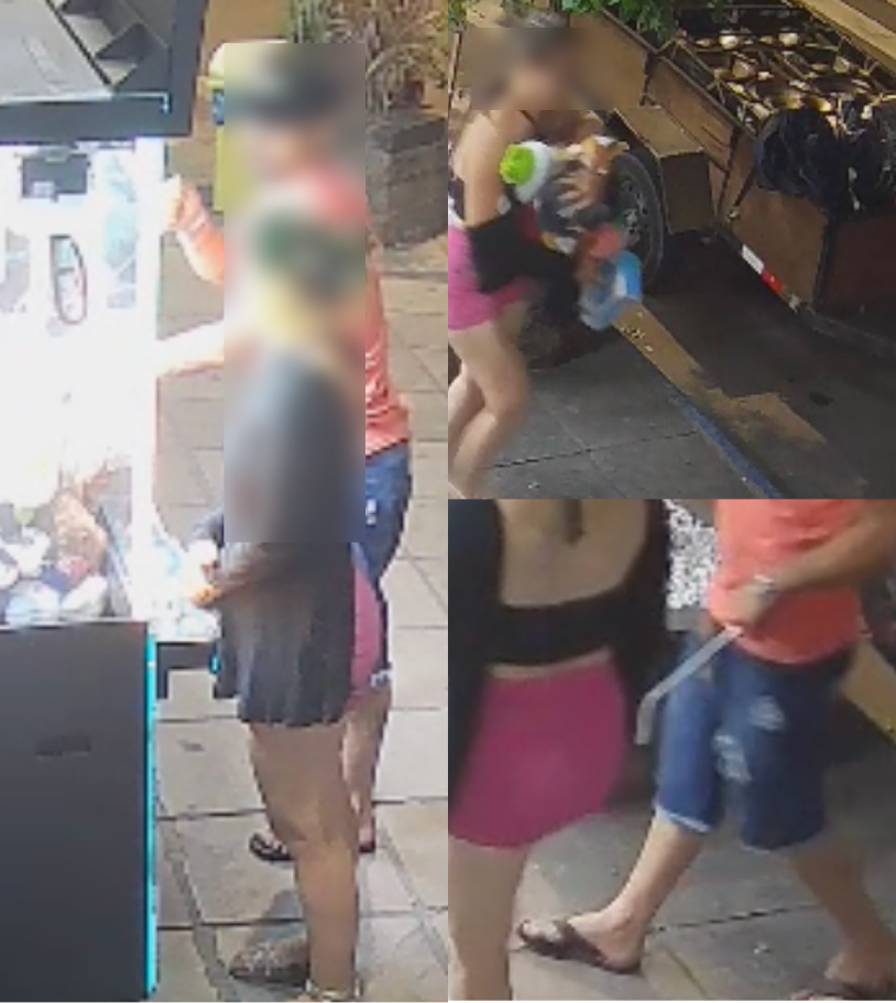 Os brinquedos foram empurrados para a área de retirada e, em seguida, houve um acionamento para liberar o equipamento. Em poucos minutos, os dois deixaram o local carregando os brinquedos furtados.