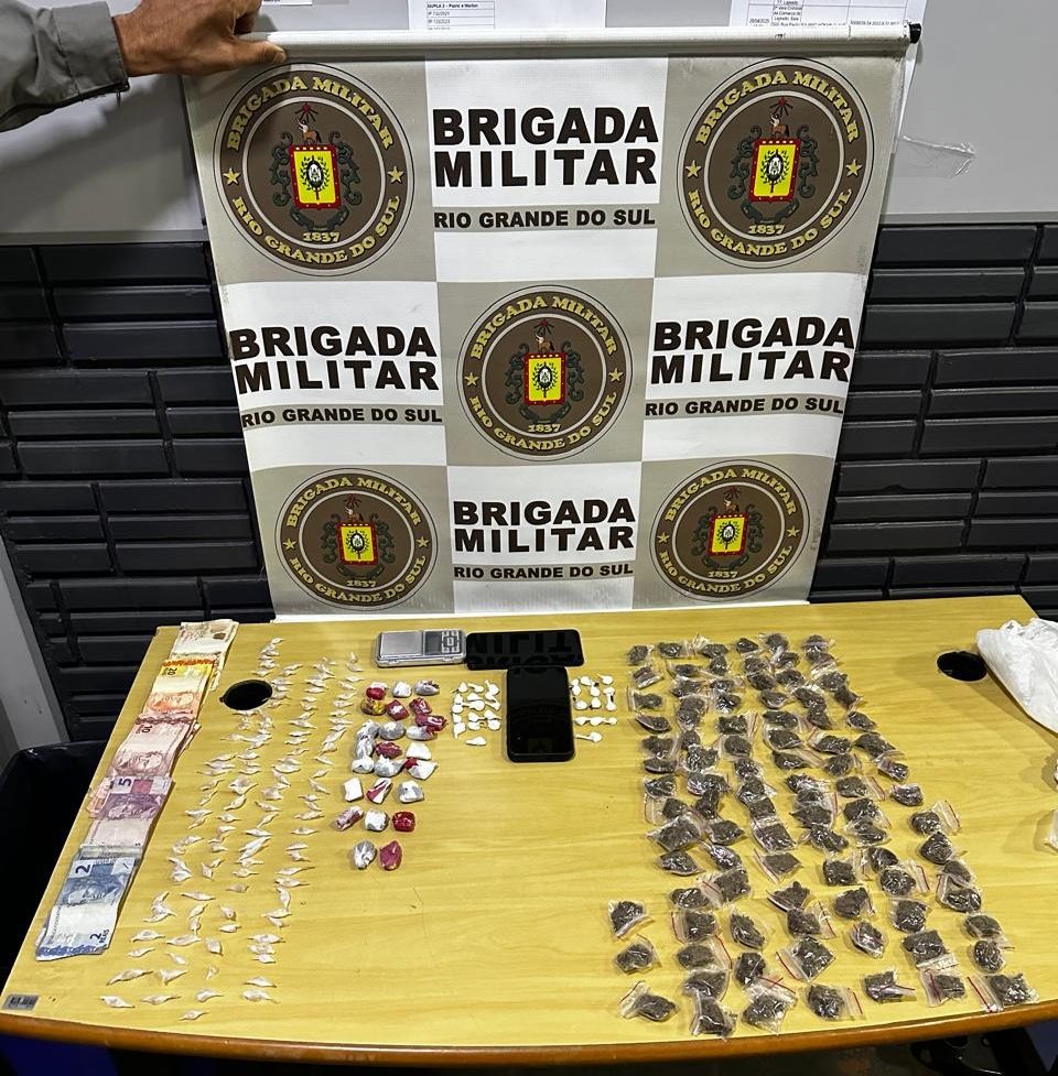 Ação da Brigada Militar apreendeu cocaína, crack, maconha e dinheiro com as suspeitas