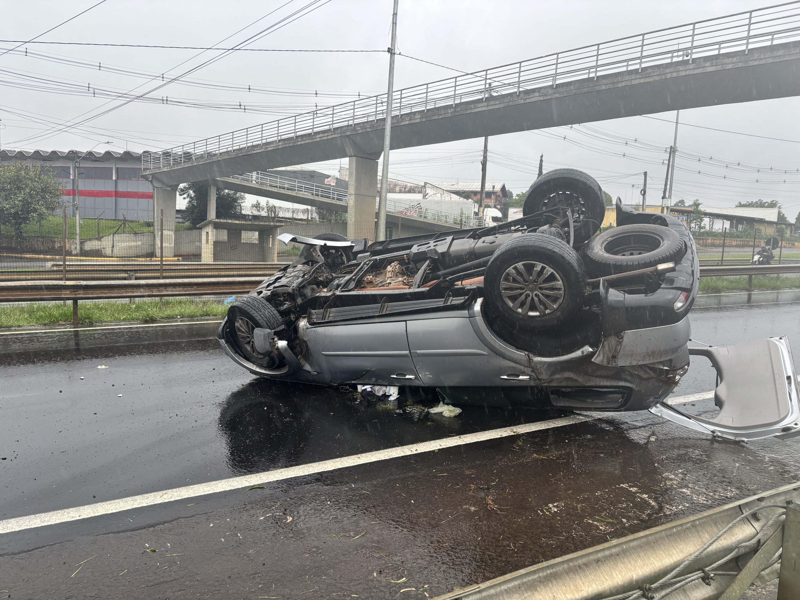 Conforme apurado no local, o motorista perdeu o controle do veículo em função de uma corredeira de água que avançava sobre a rodovia, após escoar por uma boca de lobo. A água acumulada no trecho deixou a pista escorregadia, contribuindo para a saída de pista e o capotamento da Pajero.