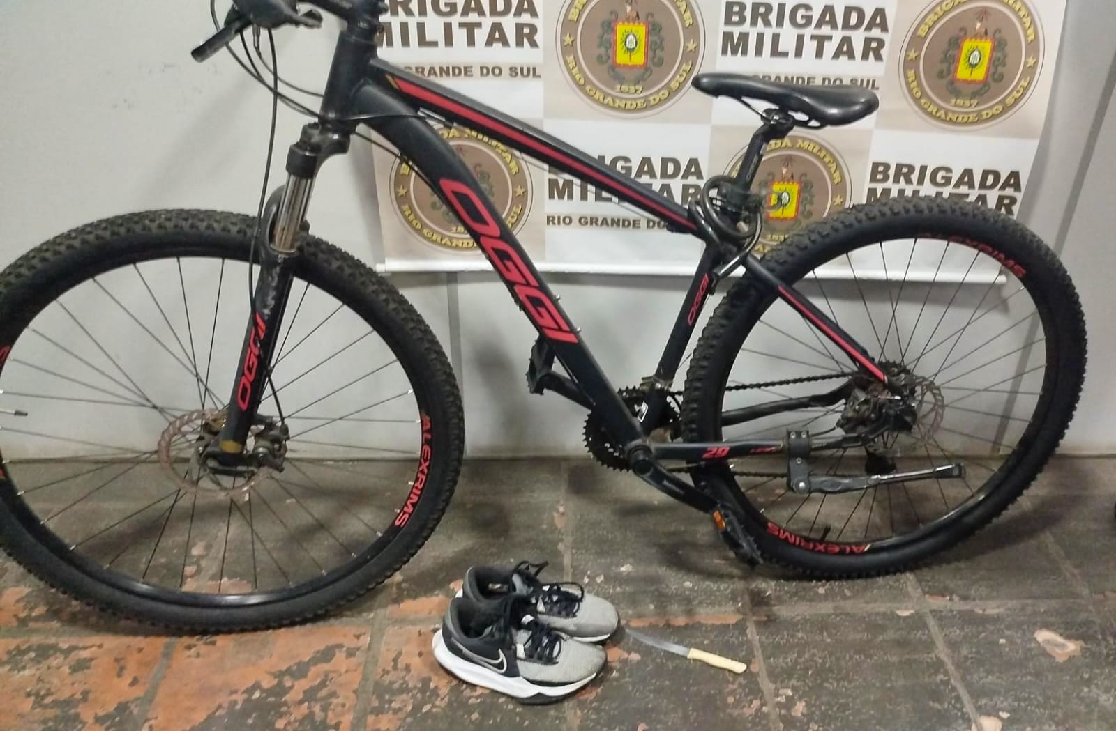 A bicicleta e o par de tênis roubados