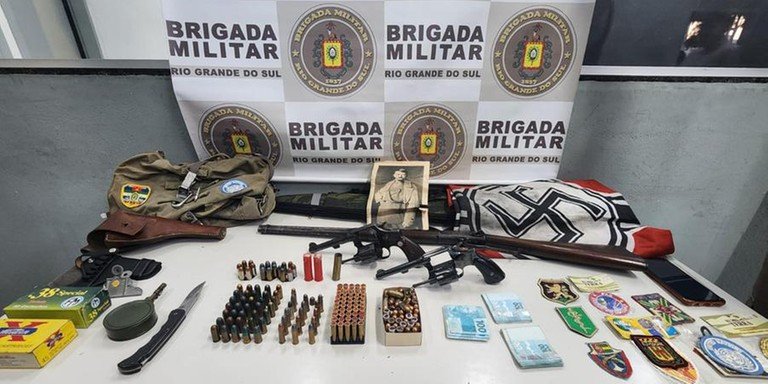 Diante do material apreendido, o homem foi autuado em flagrante por posse irregular de arma de fogo de uso restrito e apologia ao nazismo, conforme previsto na legislação penal brasileira.
