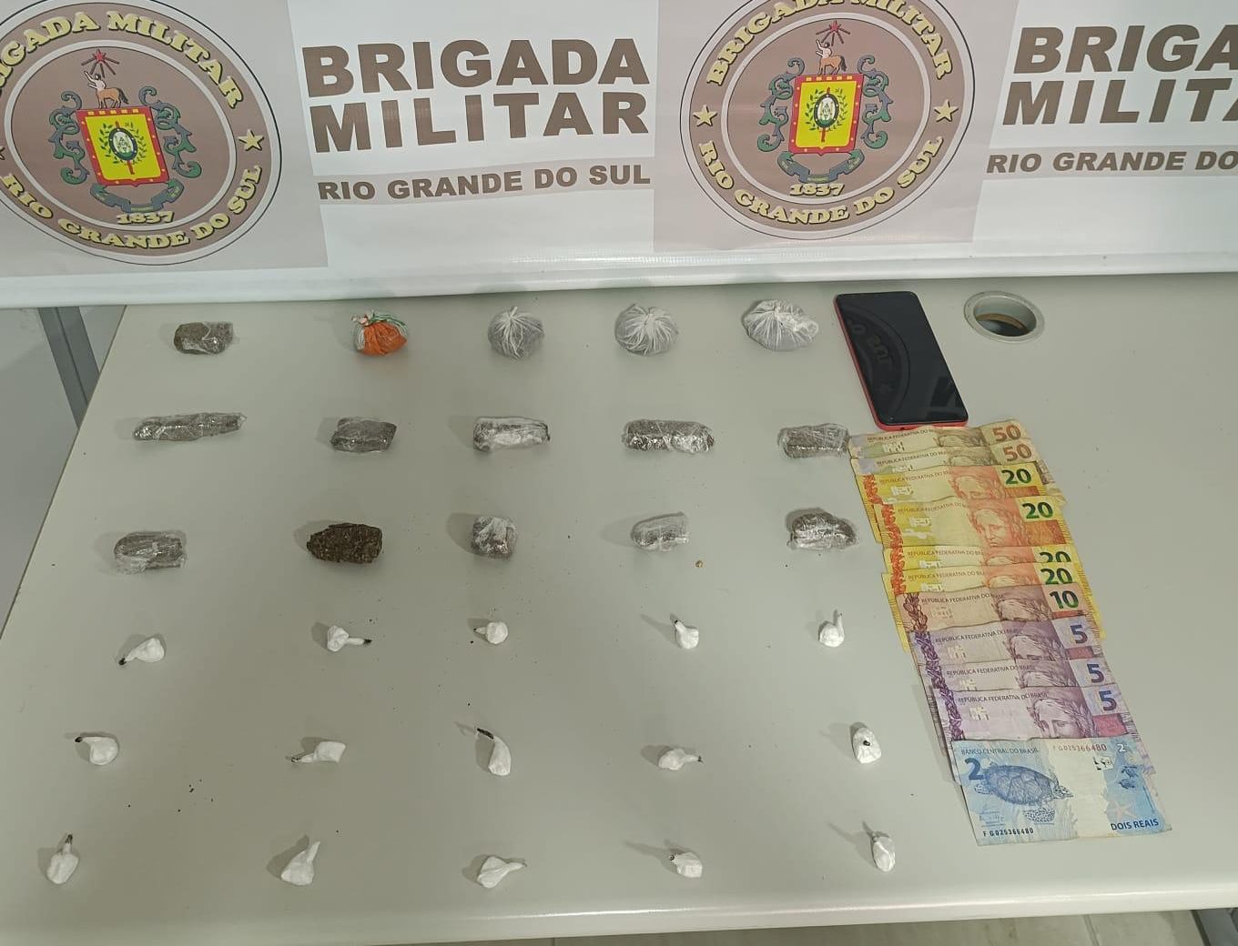 Abordagem ocorreu durante patrulhamento da Brigada Militar nesta quinta-feira; suspeito estava com porções de cocaína e maconha