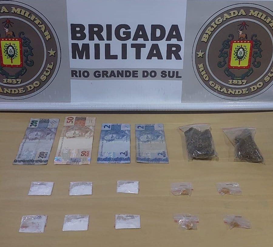 Brigada Militar encontrou cocaína, crack e maconha com o suspeito.