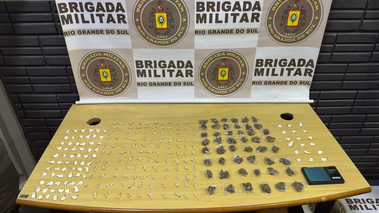 Segundo a Brigada Militar, o indivíduo, já conhecido pela prática de crimes, correu para dentro de um bar ao perceber a aproximação da viatura. Ele foi contido pelos policiais e, durante a revista, os agentes localizaram um invólucro com entorpecentes preso à cintura.