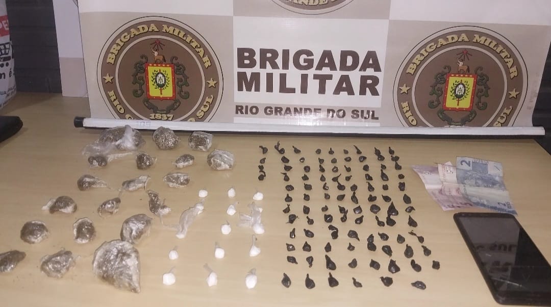 Suspeito foi abordado pela Brigada Militar no bairro Canabarro e estava com crack, maconha e cocaína