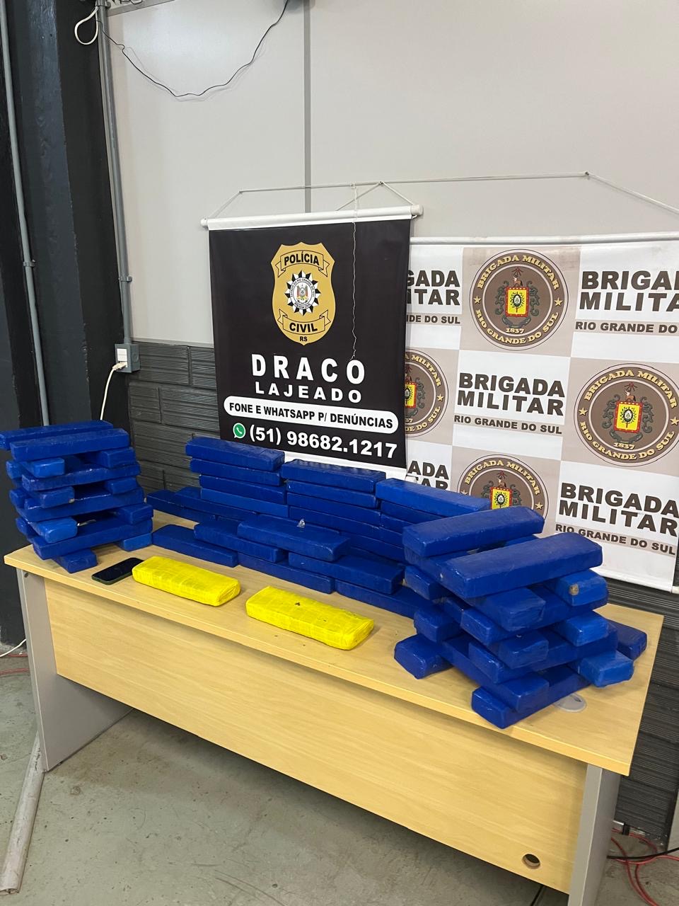 A prisão ocorreu na Estrada Linha Nova, onde um veículo foi interceptado pelas forças de segurança. No interior do carro, os policiais localizaram o suspeito e 53,5 quilos de maconha.