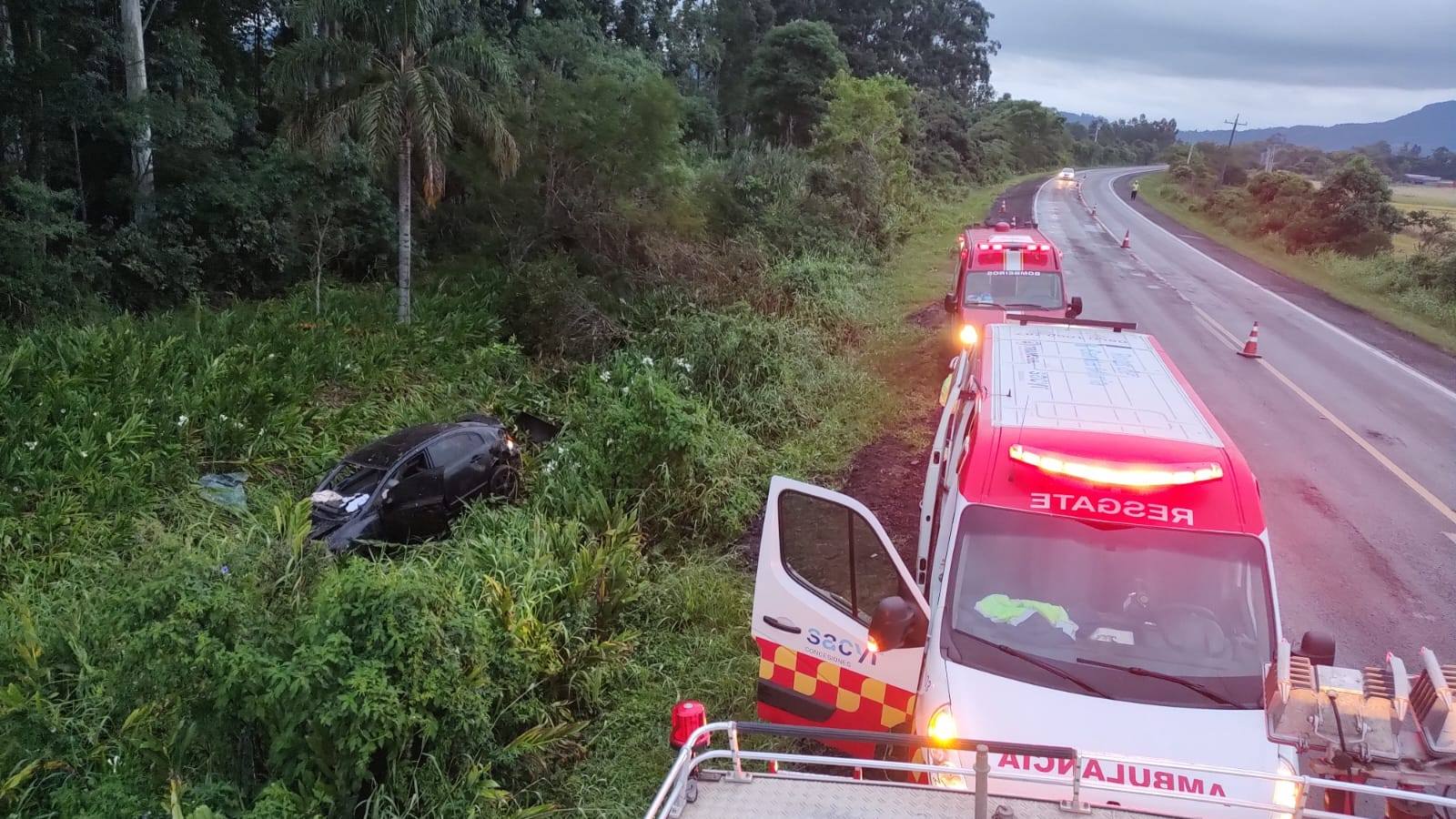 Jovem morre ao ser arremessada de carro em acidente na RSC-287, em Candelária