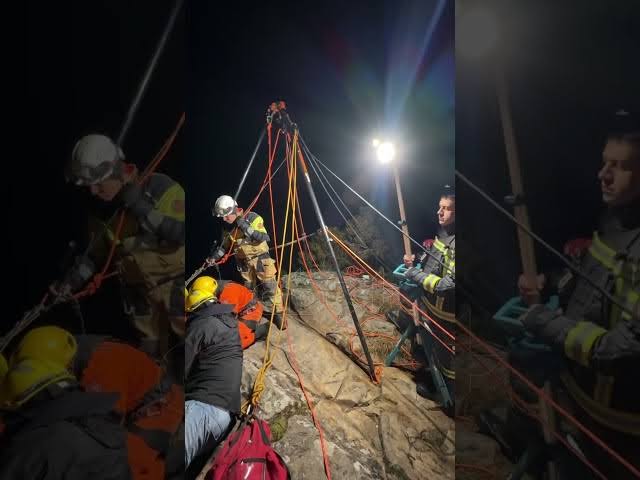 - Devido ao terreno íngreme e condições adversas, o resgate só foi iniciado por volta das 22h, com perfuração de rochas para fixar ancoragens e rapel de dois bombeiros, que chegaram ao local por volta das 23h15 .