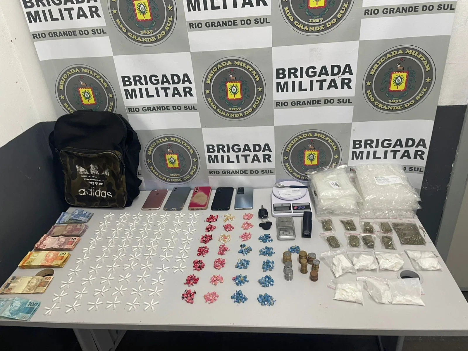 A Brigada Militar (BM) realizou a prisão de cinco pessoas e a apreensão de um menor de idade na noite deste sábado (28) no bairro Salgado Filho, em Caxias do Sul. Durante a ação, foram encontrados 619 porções de entorpecentes, além de diversos materiais relacionados ao tráfico de drogas.