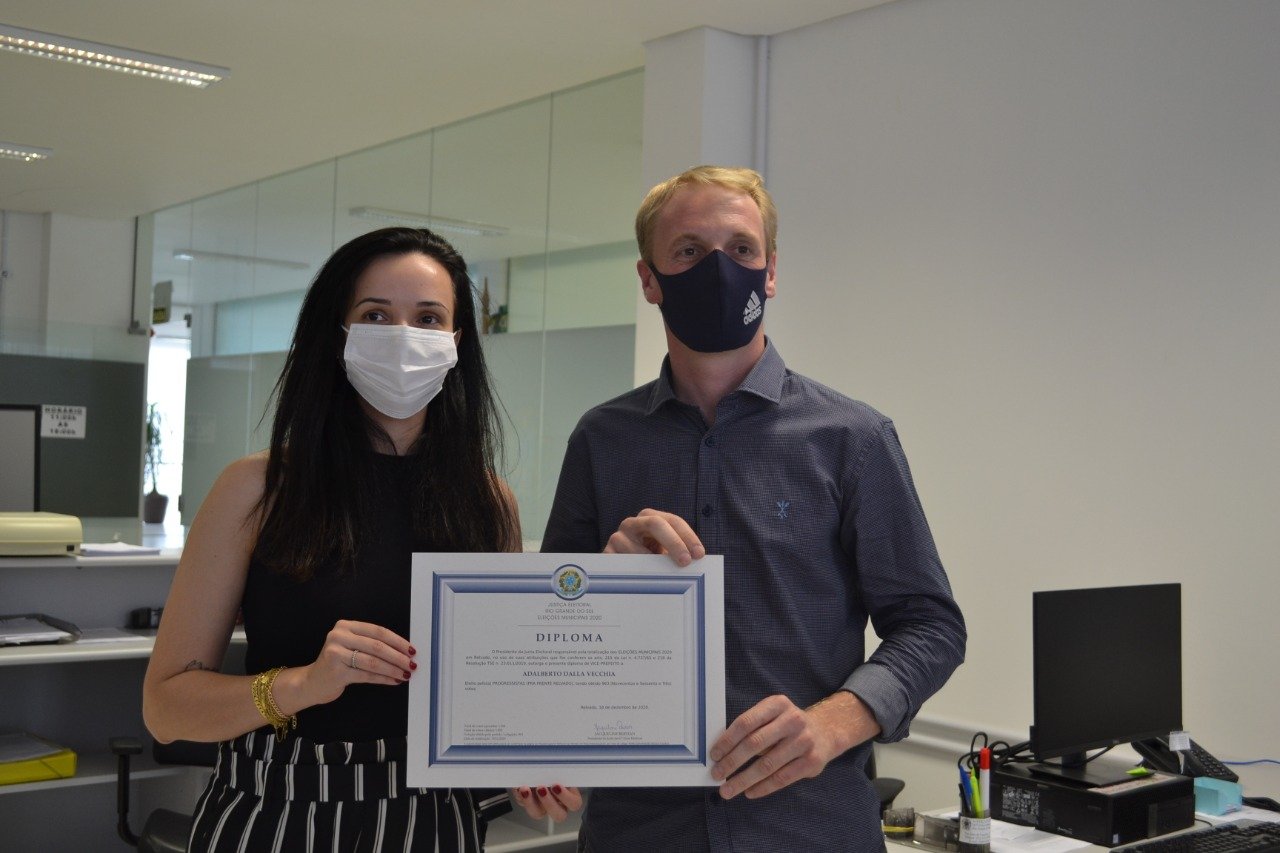 Prefeitos e vices foram diplomados às 13h30min e receberam o diploma referente as eleições de novembro. Eles serão empossados em janeiro, para um mandato de 4 anos.