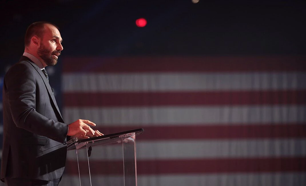 O deputado federal Eduardo Bolsonaro (PL-SP) protocolou um ofício na Câmara dos Deputados solicitando autorização para exercer seu mandato remotamente, a partir dos Estados Unidos, onde se encontra. Ele alega ser alvo de perseguição política no Brasil.