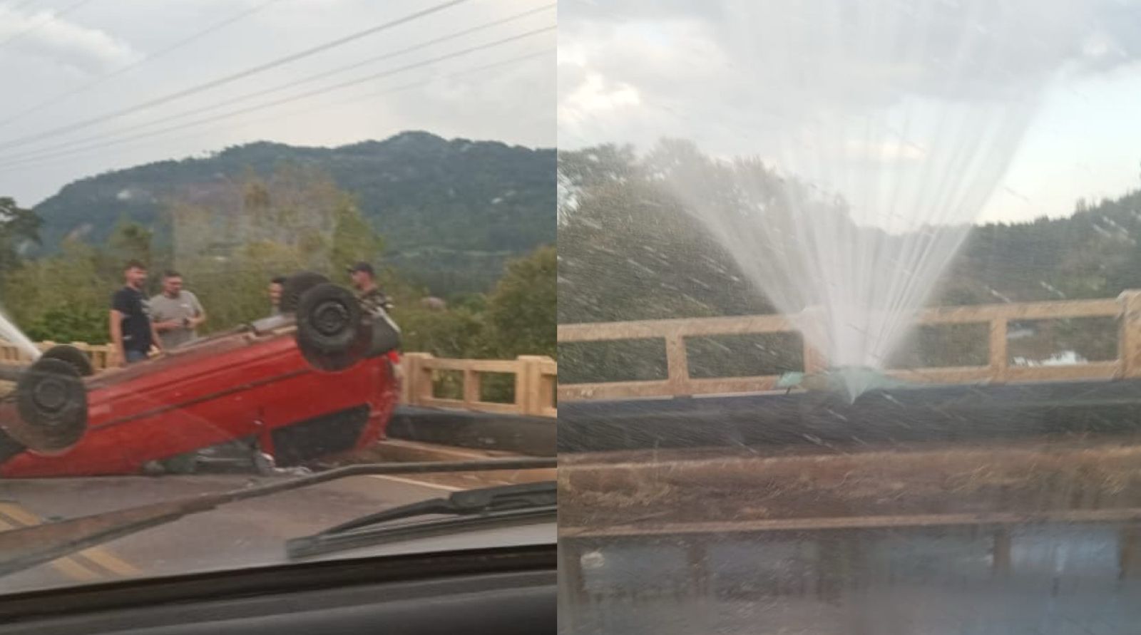 Carro capota sobre ponte do Arroio Jacaré e perfura adutora em Encantado